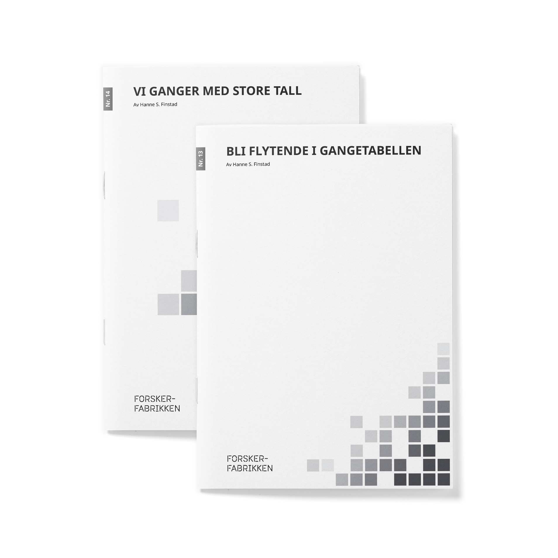 Når barn forstår hva ganging er og har lært om den lille gangetabellen, er tiden inne for å bli flytende. De må øve flere ganger på det samme. De må rett og slett pugge med pauser imellom hver økt, og det hjelper vi dere med i hefte 13. Deretter er tiden inne for å gange store tall, og det går vi gjennom trinn for trinn i hefte 14. Heftene gir dere: