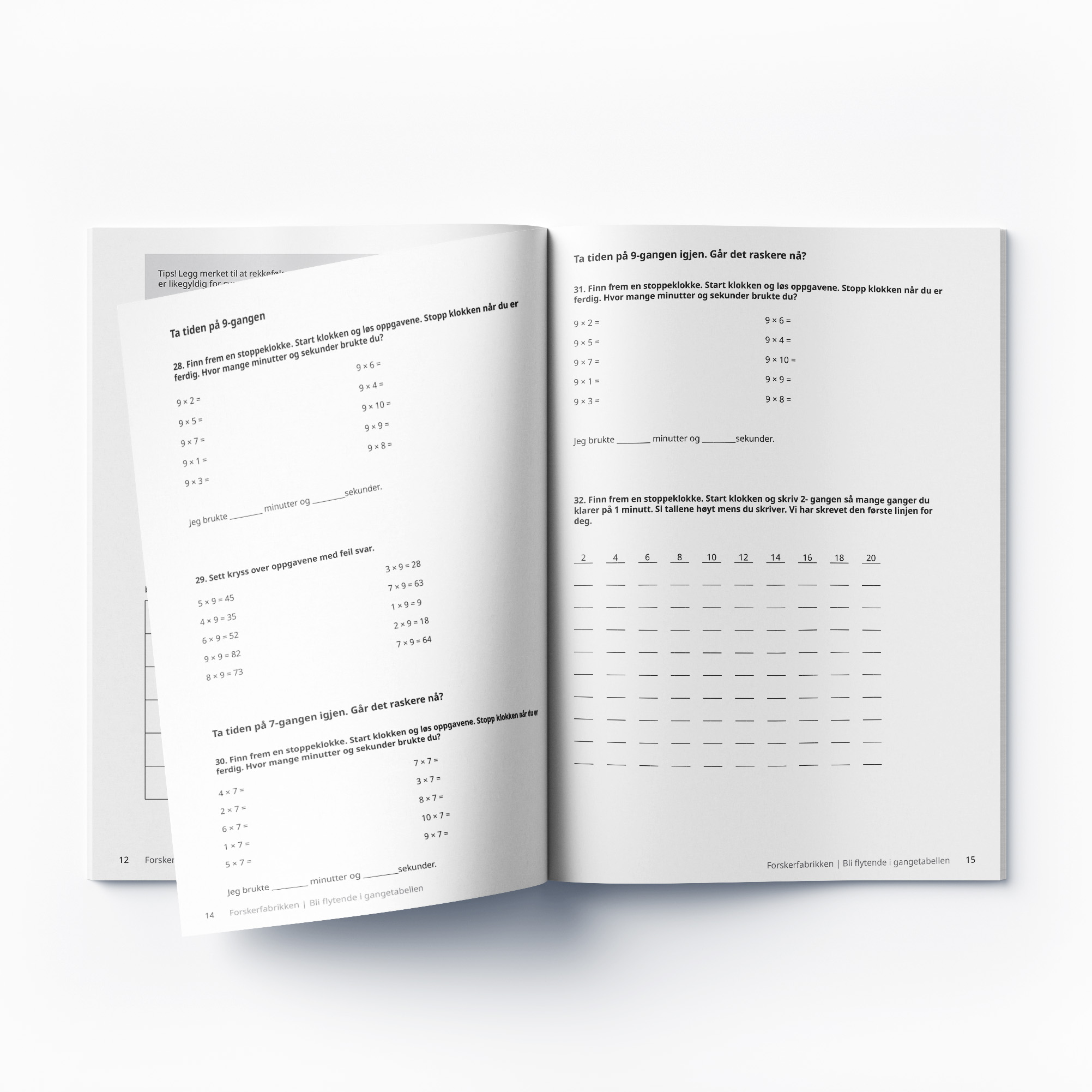 Heftene bygger på Forskerfabrikkens mattehefter 10, 11 og 12 som heter ”Treningsprogram for 2- og 5-gangen, 4- og 3-gangen og 9-, 8-, 5-, og 7-gangen.”