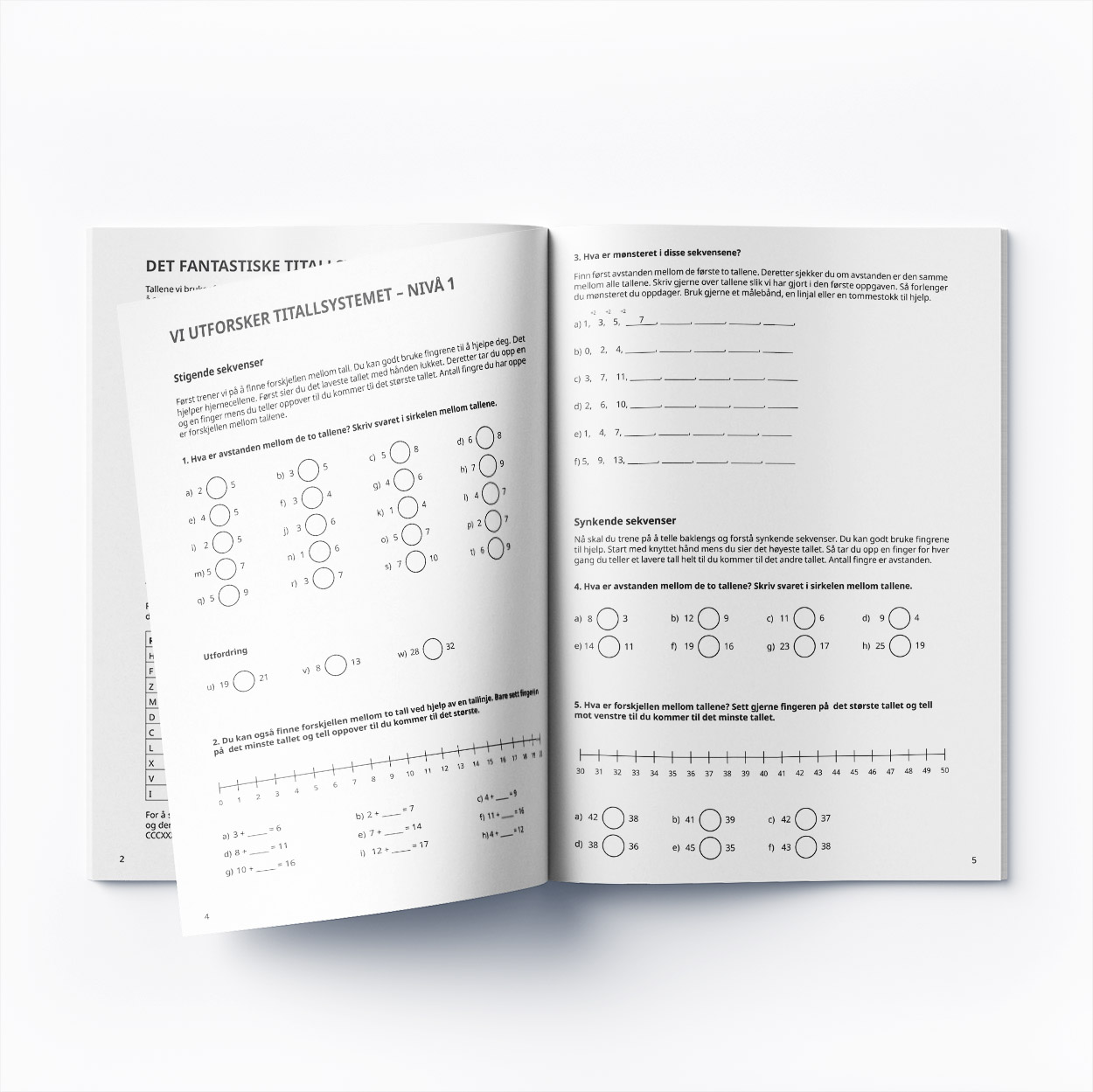 Gjennom flere år med mattekurs har vi i Forskerfabrikken erfart at mange mattebøker som brukes i skolen i dag er utformet på en måte som er distraherende. Mye informasjon gis på en gang, og morsomme figurer og mange farger trekker oppmerksomheten vekk fra matematikken. Da blir arbeidsminnet lett overarbeidet, og det blir umulig å lære.
