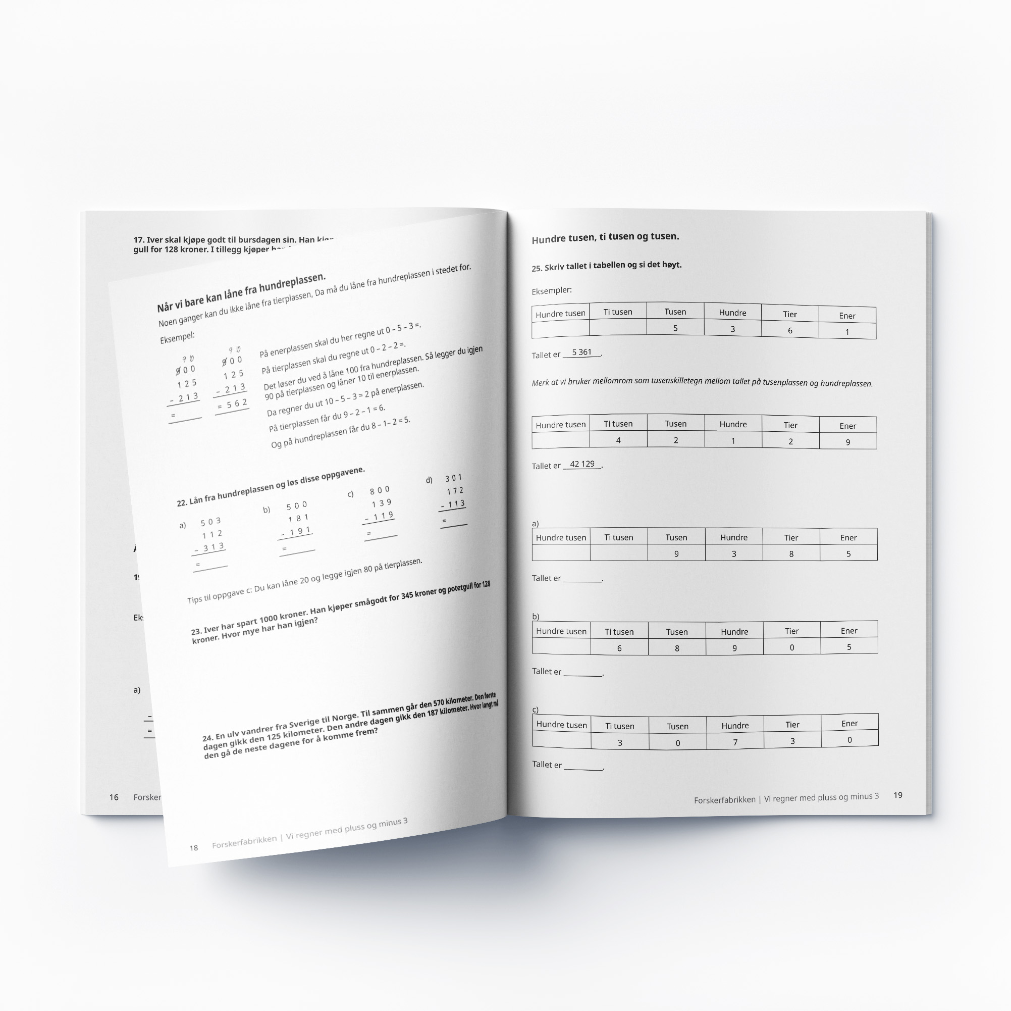 Heftene bygger pÄ mattehefte 3-5 fra Forskerfabrikken som heter «Superkrefter med tall fra 0 til 10, 20 og 100». Â